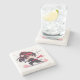 The coasters are gorgeous, a quality feel and heavy weight. They look like a precious archeological find. A rustic stone juxtaposed with a modern floral black and white print. I like the way the print goes slightly imperfect on the cut stone edges giving them a kind-of natural beauty.