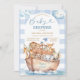 Cute Noah's Ark Blue Gingham Boho Baby Shower Invitation