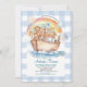 Cute Noah's Ark Blue Gingham First Birthday Invitation