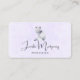 Business cards with a watercolor image of a white fox with fancy blue flora designs all over its fur.