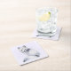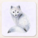 Paper coasters with a watercolor image of a white fox with fancy blue flora designs all over its fur.