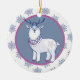 This is a cute personalised Christmas ornament to give to a son, daughter, or a grandchild. The front features an adorable nordic style reindeer image at the centre. The image is done in colours of blue, violet pink, and white, and placed on a blue grey background that is framed in matching pink. The framed image is then placed on a matching blue and white snowflake background. The back of the ornament has the same snowflake frame with your custom text at the white circular centre. Make it say whatever you'd like! This design works equally well for a boy or a girl.