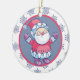 This is a cute personalised Christmas ornament to give to a son, daughter, or a grandchild. The front features an adorable nordic style Santa Claus image at the centre. The image is done in colours of blue, coral pink, and white, and placed on a blue grey background that is framed in coral pink. The framed image is then placed on a matching blue and white snowflake background. The back of the ornament has the same snowflake frame with your custom text at the white circular centre. Make it say whatever you'd like! This design works equally well for a boy or a girl.