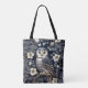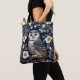 Cute Northern Saw-Whet Owl And Moonflowers On Navy Tote Bag