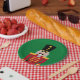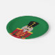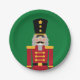 Cute nutcracker paper plates for Christmas party . Funny toy soldier drawing with green background. Trendy party supplies for the Holiday season. Personalise with your own text optionally.
