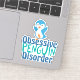 Pretty blue and white happy penguin with orange dancing feet on top of cool blue and teal writing. A cute sticker for someone who loves animals.