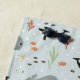 This whimsical and cute kids beach towel design features a whale, fish, swordfish, orca and seaweed, with room for you to add your child’s name in beautiful typography. The perfect whimsical gender neutral children’s pattern for ocean lovers!
