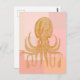 Cute Octopus Art Illustration in Pink and Gold Postcard