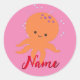 Cute Octopus Cartoon Add Name Classic Round Sticker