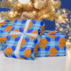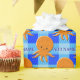 A cute orange cartoon octopus. Blue plaid pattern in the background. Baby animal wrapping paper rolls. Edit name to customise. Party decor and gift idea for kids.