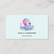 Business cards with an image of a cute girly octopus with a flower on her head. Big bright eyes and a friendly face.