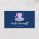 Business cards with an image of a cute girly octopus with a flower on her head. Big bright eyes and a friendly face.