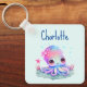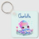 A keychain with an image of a cute girly octopus with a flower on her head. Big bright eyes and a friendly face.