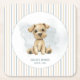 Oh, Boy! Celebrate the sweetest new arrival with our charming baby shower paper coaster, featuring an adorable wide-eyed tan watercolor puppy nestled against a soft dusty blue wash. This precious pup steals the show with its heart-melting gaze, setting the perfect tone for a joyful gathering. The background adds a playful touch with classic tan, white, and dusty blue stripes—tying everything together in timeless style. It's the perfect design to welcome a little one with love, laughter, and just the right amount of puppy-powered charm. Created by Simply Farmhouse Press.