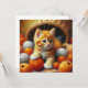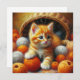 Sweet little orange striped kitten playing in a basket of balls of orange and white yarn.