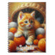 Personalised notebook. Sweet little orange striped kitten playing in a basket of balls of orange and white yarn.