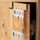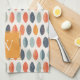 Cute Orange Blue Leafy Botanical Monogram Pattern Tea Towel