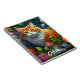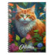 An adorable orange cat with yellow eyes sitting in pretty colourful flowers. Whimsical ai art. Add your name in the personalise area.