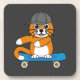 Cute Orange Cat on Skateboard Cartoon Coaster