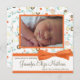 Cute Orange Flower Pattern Baby Girl Announcement . Use these cute baby announcements with a floral pattern with beige, orange, brown and light blue with a cute ribbon detail to invite your friends and family to celebrate your newborn. Use the prompt to customise the invitation by adding your own baby picture, baby name, birth date and weight details. If you would like to change the graphic, please contact me through my store and I will gladly help you. Baby photo has been taken from a public domain source (morguefile). AntiqueChandelier© antiquechandelier.ca