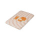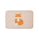 Cute kid's bath mat done in a orange and white quatrefoil pattern, with cartoon graphics of a orange cartoon fox, in the middle. Matching bath decor is available.
