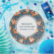 Birthday paper plates with a pattern made with cute and happy orange foxes. Dark green background. Little mushrooms and leaves sprinkled about. A white circle layered over top with your text inside.