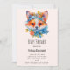 Baby Shower invitation with an illustration of an adorable fox portrait with a blue and orange floral crown and collar.