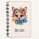 Spiral notebook with an illustration of an adorable fox portrait with a blue and orange floral crown and collar.