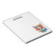 A notepad with an illustration of an adorable fox portrait with a blue and orange floral crown and collar.