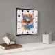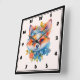 A clock with an illustration of an adorable fox portrait with a blue and orange floral crown and collar.