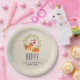 Cute Orange Fox with Wreath and Hearts Birthday Paper Plate