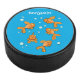 Cute orange goldfish on blue cartoon illustration hockey puck