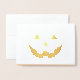 Cute orange jack o lantern carved pumpkin face spooky scary funny modern Halloween foil greeting card /Trick or Treat invitation.