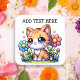 An adorable kitten sitting in a patch of blue and pink flowers personalised sticker.
