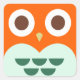Cute Orange Owl on Green Plaid Background Square Sticker