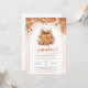 Charming pumpkin-themed baby shower invitation with leopard bow & peonies.