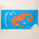 Cute orange seahorse bubbles cartoon illustration beach towel
