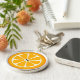 A simple minimalist design with an orange slice and a fun font monogram that you change to your own initial.
