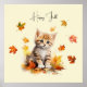 Cute Orange Tabby Kitten in Fall Leaves Poster