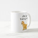 Graphic artwork depicting a sweet little orange tabby kitten along with text templates that are easy to customise decorates each side of this mug.