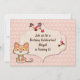 This birthday invitation for girls features a cute orange and white tiger striped kitty cat. There is also an adorable bird with ice cream on a pink and white daisy flower background.~