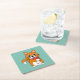 Cute Orange White Cat Eating Red Apple Cartoon Square Paper Coaster