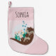 Cute Otter Cartoon Flowers and Name Kids Small Christmas Stocking