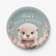 Cute Otter Girl Baby Shower Sage & Pink Floral Paper Plate