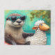 Cute Otter in a Floating Sheep Floatie on a River Postcard