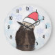 Cute Otter Wearing a Santa Hat Christmas Large Clock