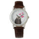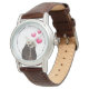 A watch with an image of a cute otter with hearts floating upward. The hearts are pink and chubby-looking with a shiny reflection.This otter is quite adorable with his paws resting under his furry little chin. His fur looks wet from hanging out in the water.