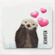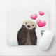 Personalised mousepad with an image of a cute otter with hearts floating upward. The hearts are pink and chubby-looking with a shiny reflection.This otter is quite adorable with his paws resting under his furry little chin. His fur looks wet from hanging out in the water.