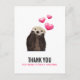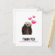 A thank you postcard with a funny pun which says "Thankyou for being otterly amazing". Illustrated with an image of a cute otter with hearts floating upward. The hearts are pink and chubby-looking with a shiny reflection.This otter is quite adorable with his paws resting under his furry little chin. His fur looks wet from hanging out in the water.
