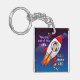Cute Outer Space Rocket Ship Blast Off Birthday Key Ring
